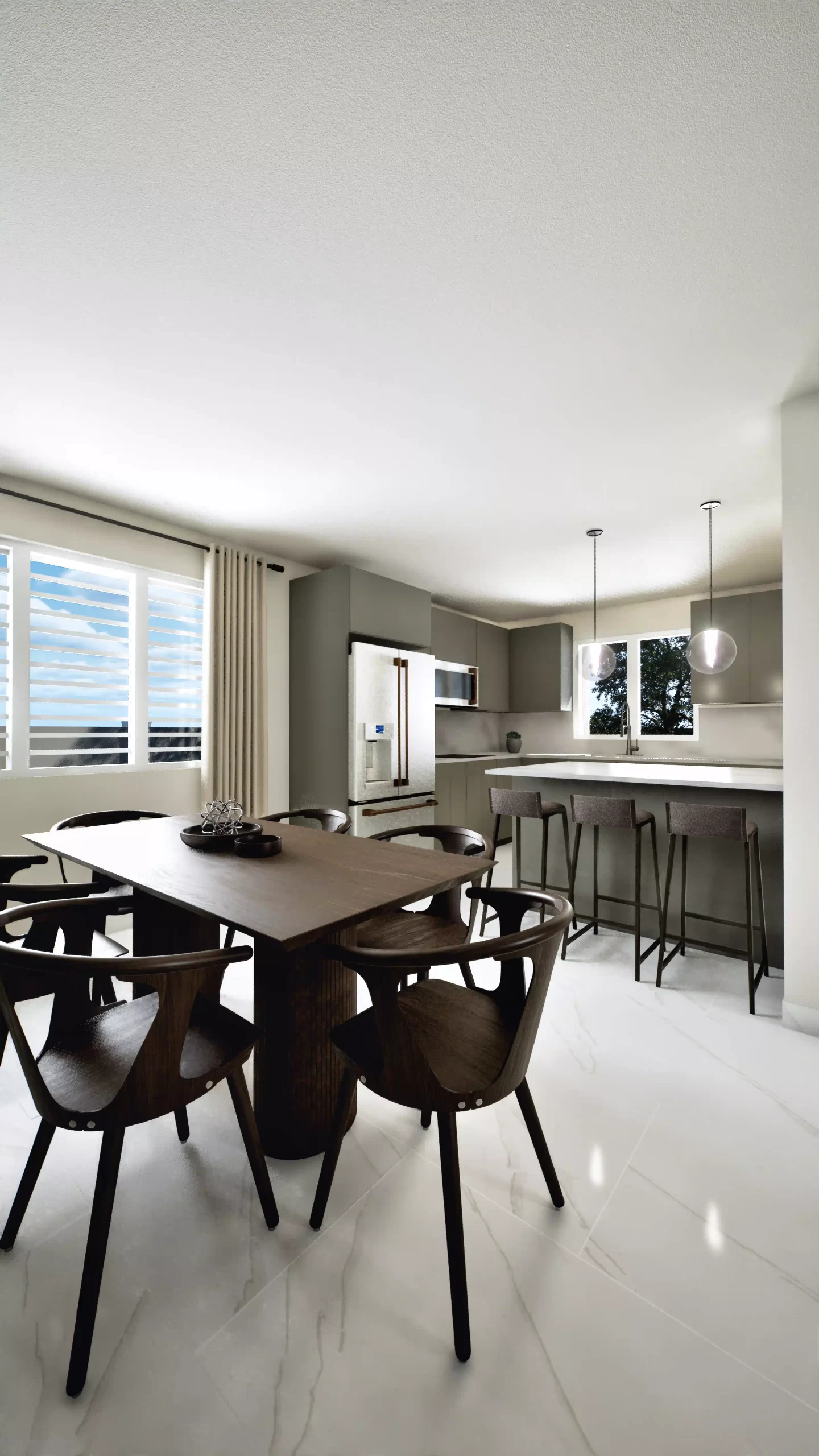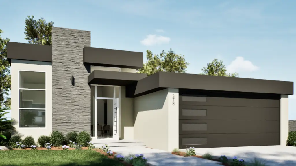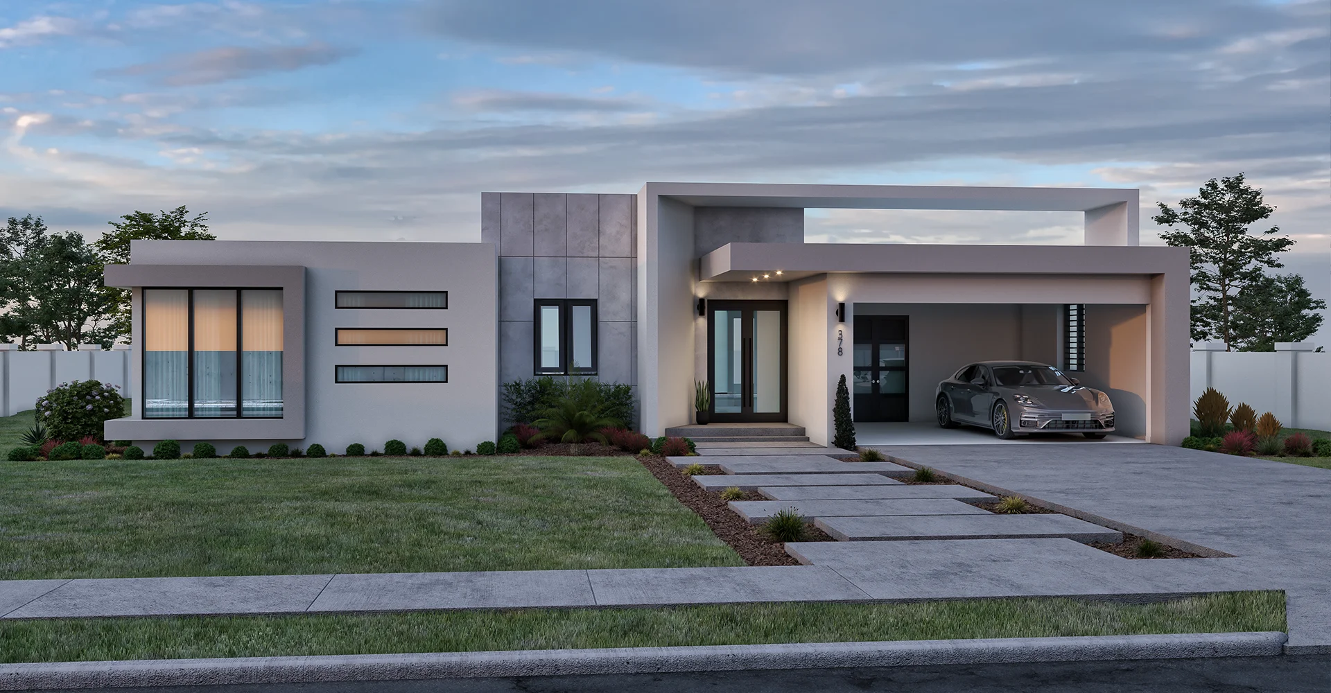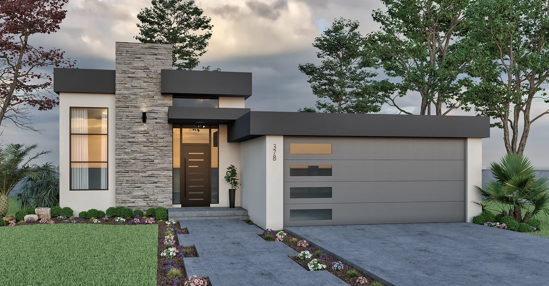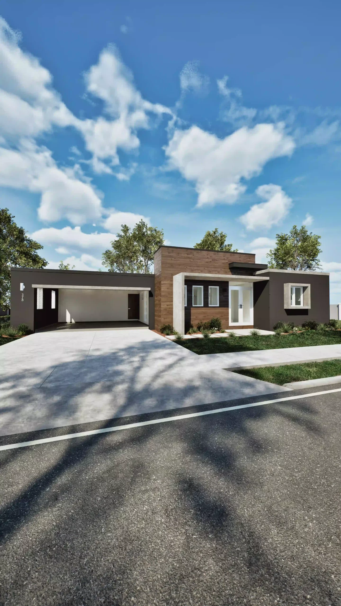 Nuevo modelo reducido 3 habitaciones, 2.5 baños, altura de techo desde 9′ hasta 12′-6″, marquesina doble ...